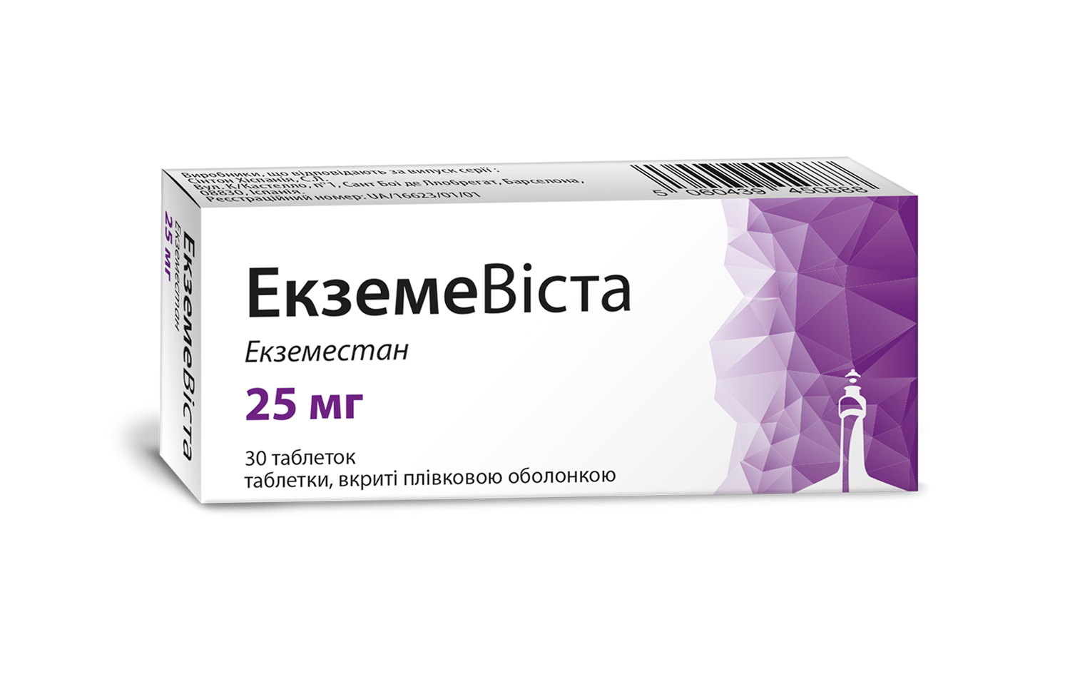 1 таблетка, вкрита плівковою оболонкою, містить екземестану 25 мг;